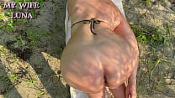 A massive dick loves a milf's ass on a public beach.