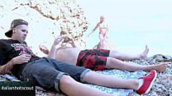On the beach, threesome sex with double penetration