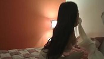Japanese long haired solo brunette Mio Arisaka has an orgasm with sex toy uncensored.