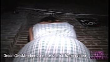 Publicly nude. In her stockings and without underwear, a sexy Milf Frina cleans the inside of a car in the yard. A neighbour and voyeur gaze out the window.