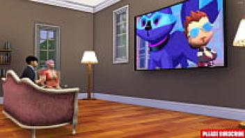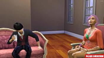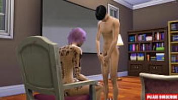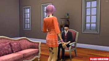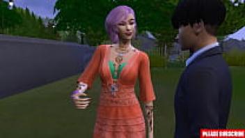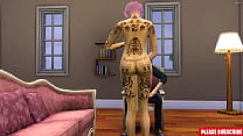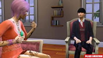 Asian stepmother and stepson with tattoos cuddling on the chair for the first time || Korean stepmother and stepson for the first time