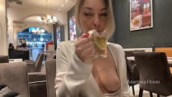 showing off one's pussy and breasts in a cafe. Wear an upskirt and no underwear in public.