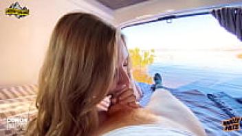Molly Pills, the star of a wild amateur sex film, is seen being loved in a van at a public beach during spring break.