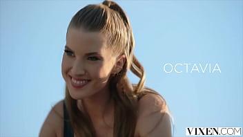 Octavia Red and Kenna James, VIXEN best friends, share their personal trainer and cock.