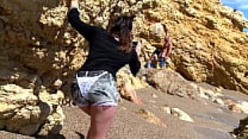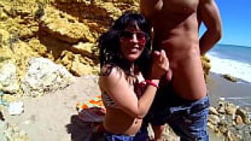 Peeping mum goes to the beach with a couple to give them some intense affection.
