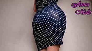 PAWG wearing latex gloves and a form-fitting dress Riding a Dildo Upskirt with Big Ribs