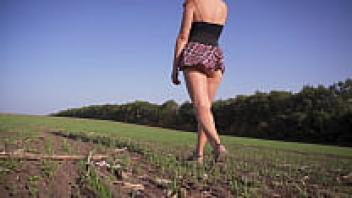 A gorgeous girl in a school uniform walks outside while flaunting her full back panties and upskirt.