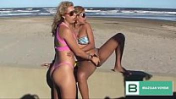 On a sandy beach, two females are sucking. (Entire video in red xvideos)