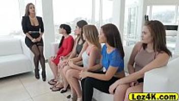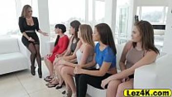 Brunette women Licking and fingering in a lesbian orgy group