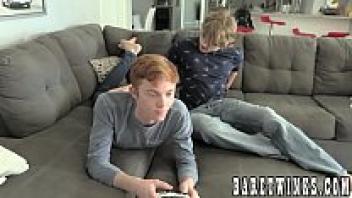 Smooth twinkling friends switch from playing video games to barebacking.