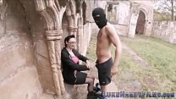 A mature stepmother offers a POV blowjob while wearing spectacles.