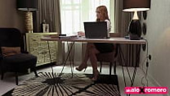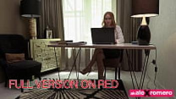 Redhead secretary with a bust wearing glasses and high heels (short)