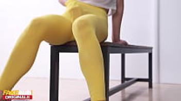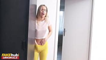 Hot young woman with an orgasmic addiction on FAKEhub squirts on the towel of the workout buddy and receives a cream pie.