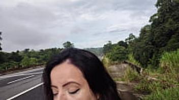 In front of onlookers, a gorgeous, plump girl is in love in the street.