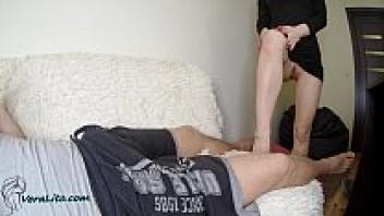Skinny babe stepdaughter Sheisnovember, after giving face love in fancy lingerie, licks the dirty balls of my stepdad's scrotum and cum swallow. POV Erotica by Ms. November: Long Blonde Hair Dangles, Mouth Is Filled With Big Penis
