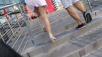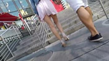 Beautiful outdoor butt upskirt without underwear. Voyeur in a public park, spying on a MILF. amateur fetish. Behind the scenes at PAWG.
