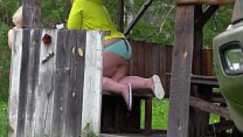 Voyeur outside eavesdrops on the production of a pornographic film by two mature lesbians. Behind the scenes, a fat milf with a large ass. Fetish.