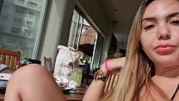 I'll expose my pussy at the restaurant while we have breakfast. Watch the entire video at bolivianamimi.tv.