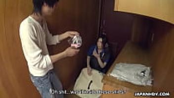 When the cleaning lady shows up, she gets creampied.