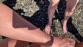On a public beach, a girl masturbates her partner.
