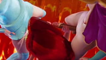 Triple Futa in Pokemon: Nessa x Hilda x Bea in 3D porn