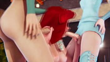 Anna, Elsa, and Ariel in Triple Futa: Frozen and Little Mermaid 3D porn