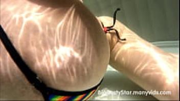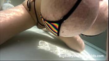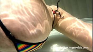 Penelope Black Diamond's enormous tits in a rainbow bikini from Wicked Weasel (tits peeing and milking)