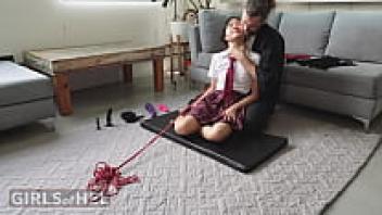 In Flame Hel's Dungeon, a submissive Japanese schoolgirl experiences a bondage orgasm.