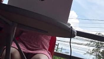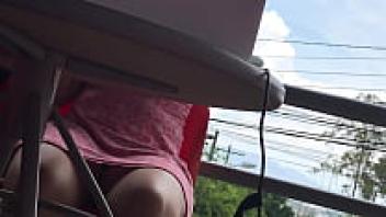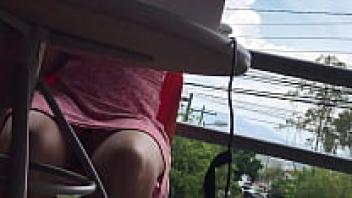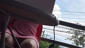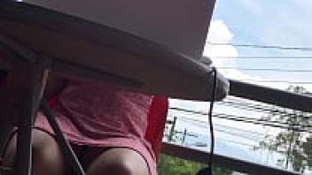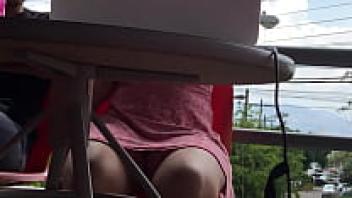 Under the table, an amateur upskirt surveillance camera