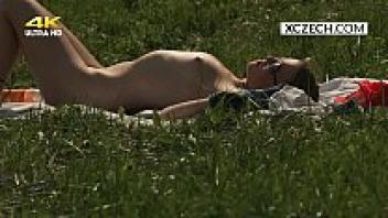 Secretly fingering her pussy, the Czech blonde