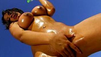 Nude beach sex in public. A curvaceous Latina fingers her sandy pussy after taking off her bikini. Gorgeous Face & Perfect Oiled Ass