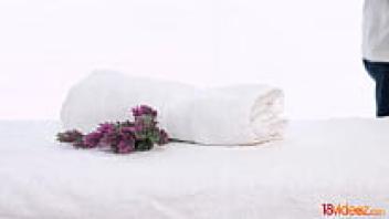 Oiled-up teen has her pussy fingered and loved hard on the massage table.