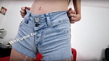 Brunette Babe with the Perfect Body and Ass in Tight Denim Shorts