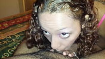 A hot, busty wife sucking cock and sucking
