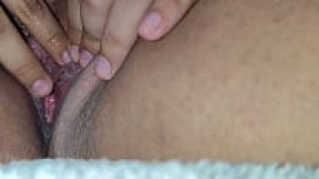 My stepmother is an expert at caressing her lovely pussy and tits.