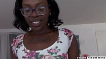 Adorable Black Adolescent Gets a Big Facial on Her Glasses and Does a Messy Blowjob
