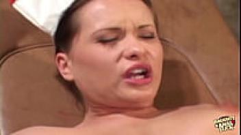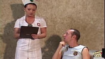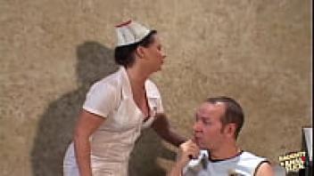 Before inserting it into her butt, the brunette nurse allows the hung patient to suck his cock.