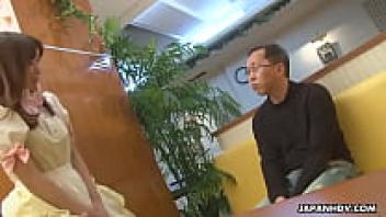The customer cums in the waitress's mouth while she sucks him off.