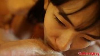 Asian ladyboy with a slim build A happy white friend and Kaow licking a white dick