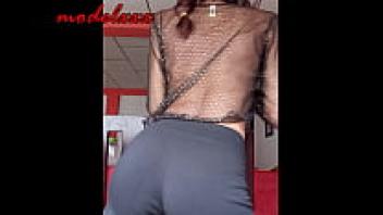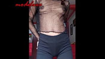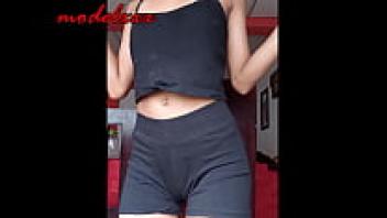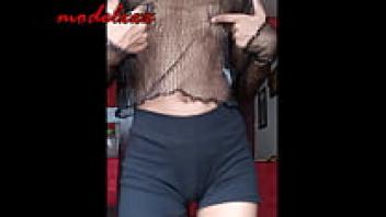 In a little costume, the attractive, slender model dances and flaunts her gorgeous physique.