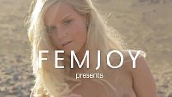 On a public beach, a nude woman masturbates.