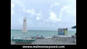 Miss Creamy, a French instructor, blowjobs a stranger on a nude beach with a cumshot.