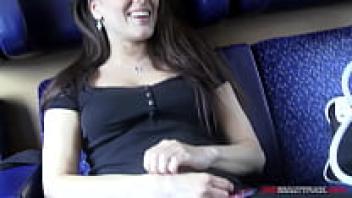 Ami, a horny babe, pumps her hairy pussy with her fingers and fists until she squirts.