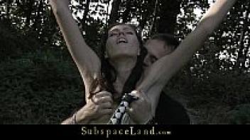 Skinny babe, harshly treated in outdoor bdsm.
