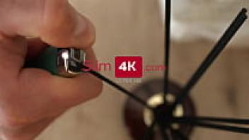Seduction of a Young Brunette on a Massage Table with Glasses