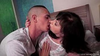 A young guy is adored by a horny granny.