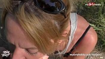 - A blonde amateur performs anal in nature.