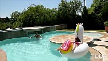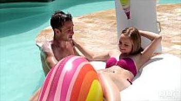 Lady Bug, a horny teen porn queen, gives head and gets banged poolside hardcore.
