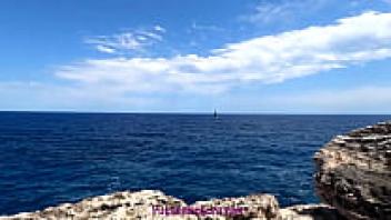 Noemie Jolie, a Spanish brunette pornstar, is adored on the beach.