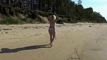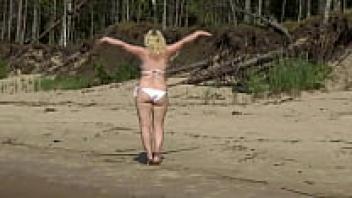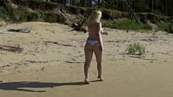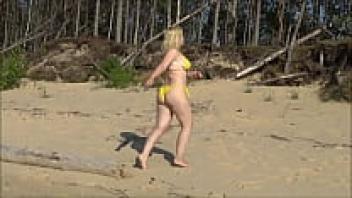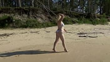 Nude beach sex in public. A curvaceous Latina fingers her sandy pussy after taking off her bikini. Gorgeous Face & Perfect Oiled Ass